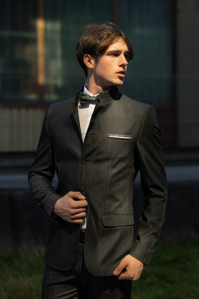 To je izbira za maturanta, ki želi pokazati individualnost, a še vedno spoštuje eleganco dogodka. Jeans v tej izvedbi ni vsakdanji, je premišljeno izbran, krojen in stiliran.