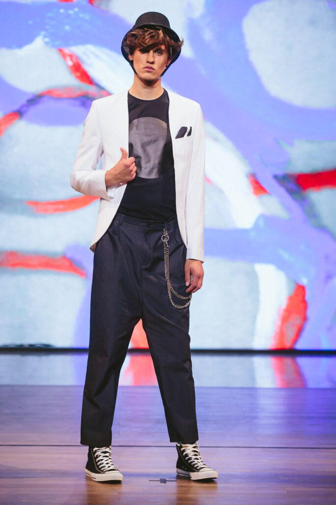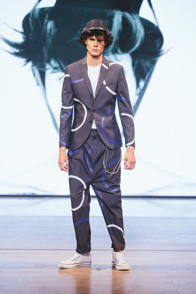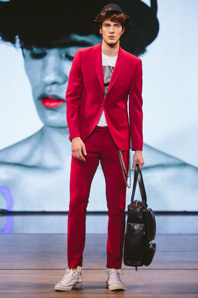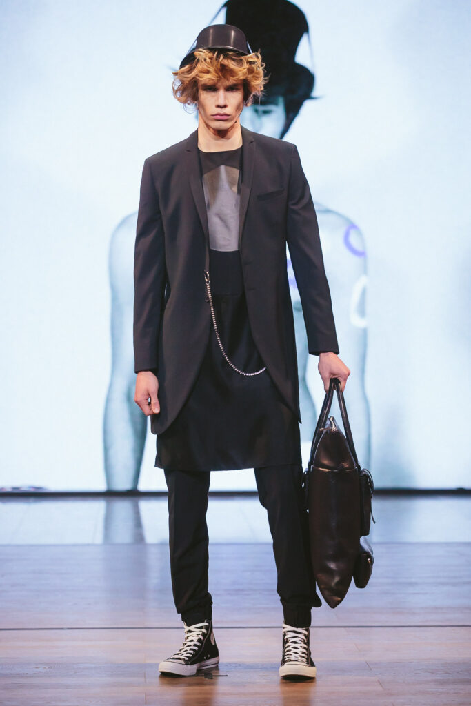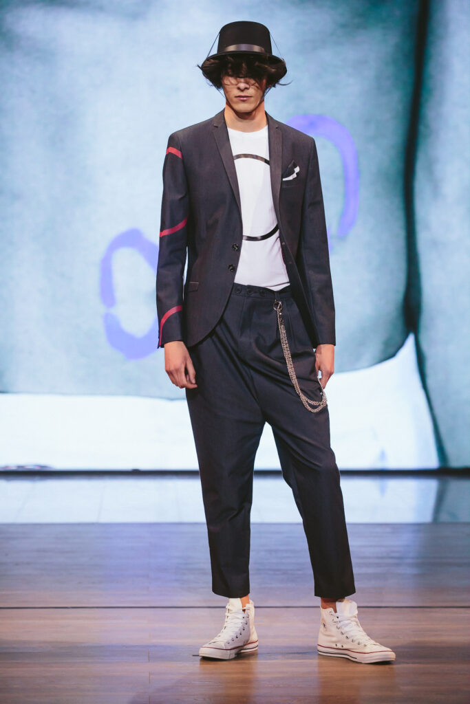 Moško kolekcijo, predstavljeno na aprilskem Mercedes-benz fashion weeku, opisujeta drznost in odštekanost. Meje smo tokrat premikali z vsakim na novo oblikovanim kosom. Preoblikovali smo obstoječe moške suknjiče iz dodali novo silhueto hlač, ki zdaj niso več ozke, ampak so večinoma široke. Manekeni so bili prava paša za oči; že tako popolne stylinge je oblikovalka Zlata Zavašnik na pisto pospremila z velikimi usnjenimi torbami, slovenske oblikovalske elite Marjete Grošelj, s cilindri na glavah in z Allstarkami na nogah. Za drzen in uporniški videz pa so poskrbele jeklene verige. Tako smo popolnoma nesorodne kose oblačil spretno in z veliko mero drznosti ter domišljije združili v popolno celoto.