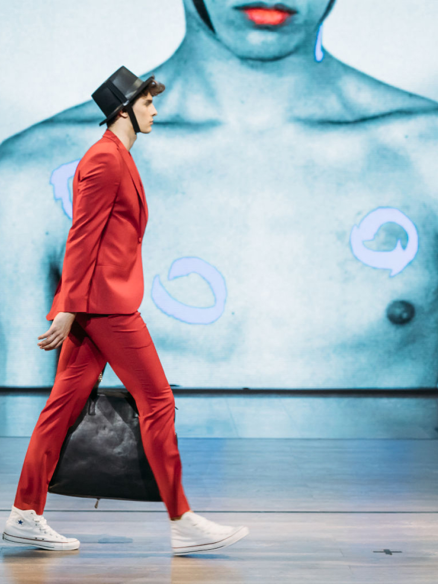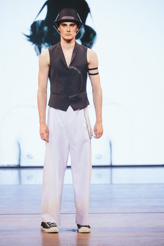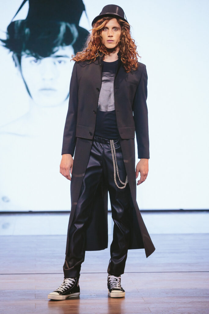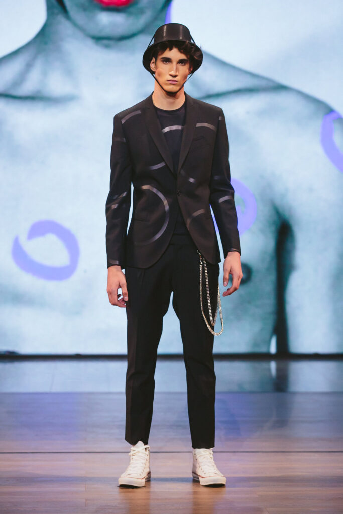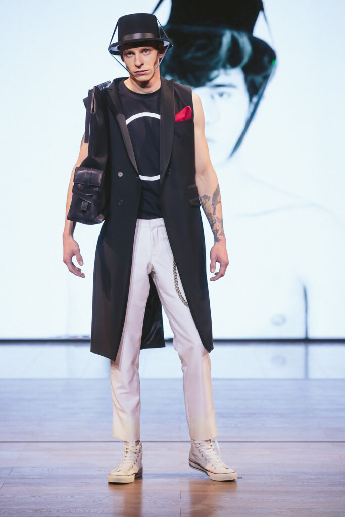 Moško kolekcijo, predstavljeno na aprilskem Mercedes-benz fashion weeku, opisujeta drznost in odštekanost. Meje smo tokrat premikali z vsakim na novo oblikovanim kosom. Preoblikovali smo obstoječe moške suknjiče iz dodali novo silhueto hlač, ki zdaj niso več ozke, ampak so večinoma široke. Manekeni so bili prava paša za oči; že tako popolne stylinge je oblikovalka Zlata Zavašnik na pisto pospremila z velikimi usnjenimi torbami, slovenske oblikovalske elite Marjete Grošelj, s cilindri na glavah in z Allstarkami na nogah. Za drzen in uporniški videz pa so poskrbele jeklene verige. Tako smo popolnoma nesorodne kose oblačil spretno in z veliko mero drznosti ter domišljije združili v popolno celoto.