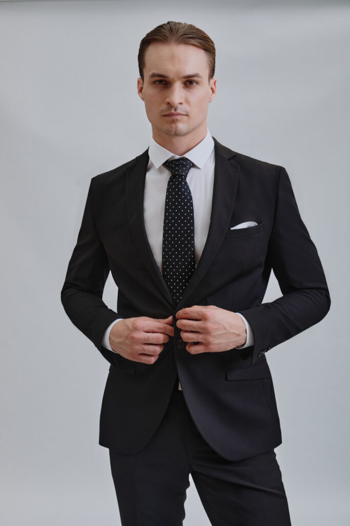 Letos je zelo v trendu tudi zelena moška obleka. Če ste pa za bolj umirjene in preverjene tone, pa nikoli ne zgrešite s črno obleko. Kravato in robček lahko izberete v barvi obleke vaše soplesalke.