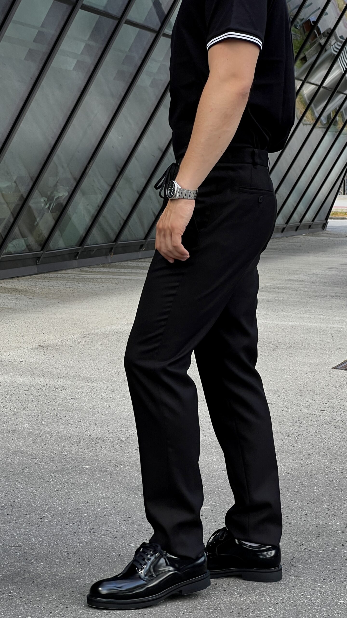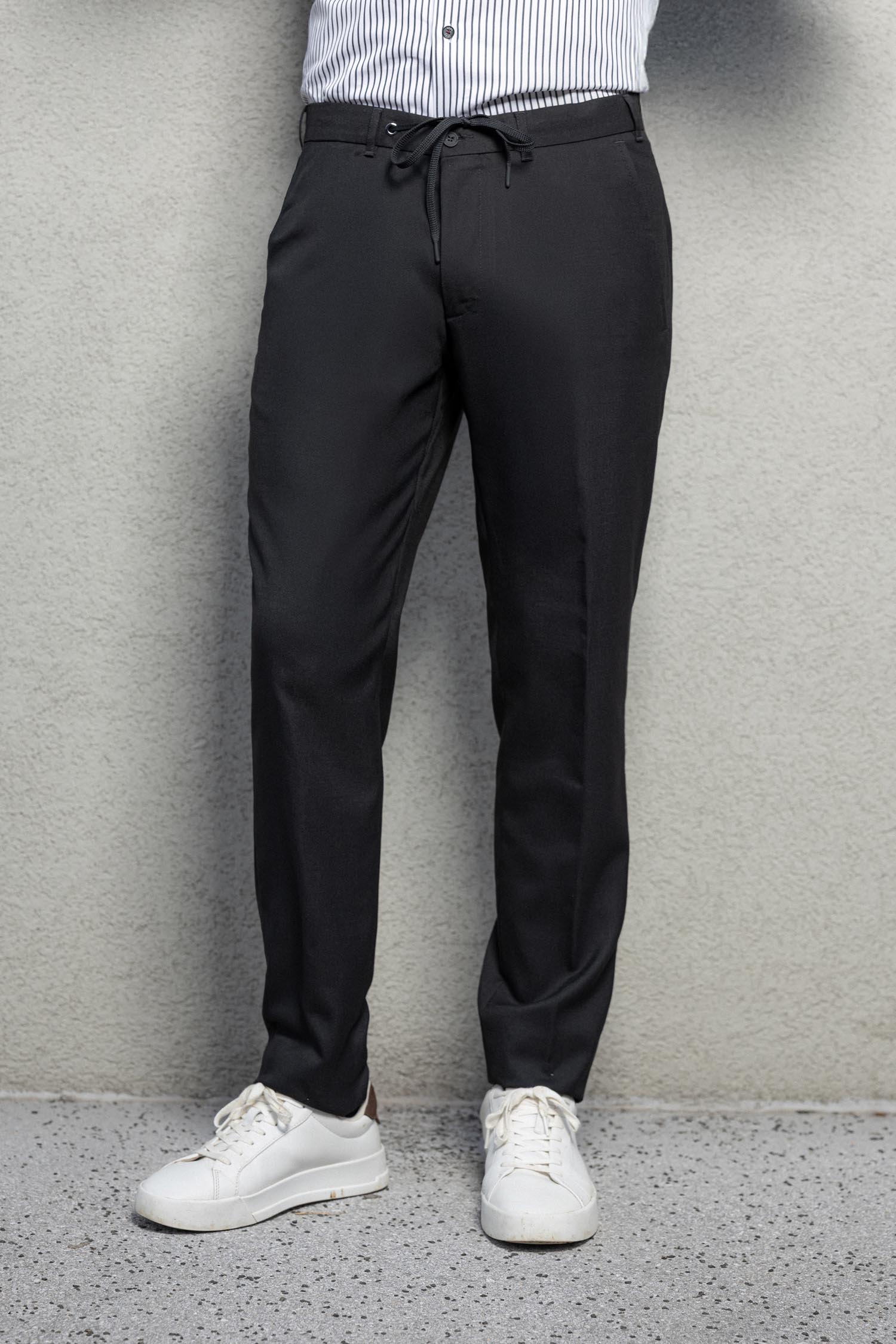 Črne poletne hlače DIGEL so odlična izbira za vse, ki iščejo videz klasične elegance z občutkom popolne sproščenosti. Izdelane so iz lahke in zračne tkanine, ki je idealna za tople dni. Posebnost hlač je trak v pasu, ki omogoča prilagodljivo zavezovanje namesto klasičnega pasu – detajl, ki prispeva k bolj udobnemu prileganju in modernemu videzu.